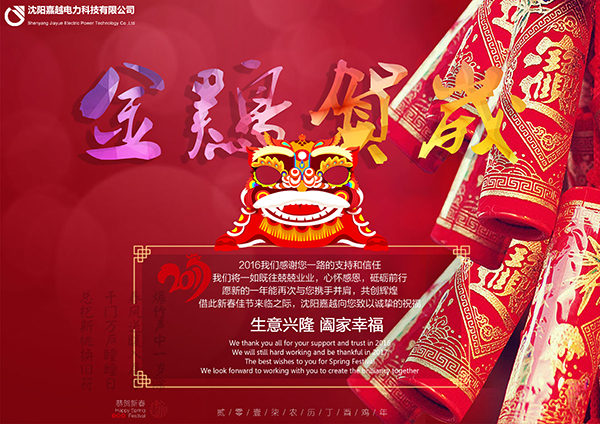 沈阳嘉越全体员工在这里祝您度过一个欢快愉悦的 春节假期 !