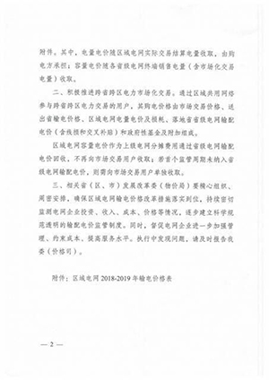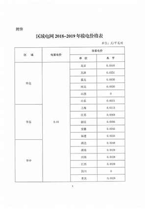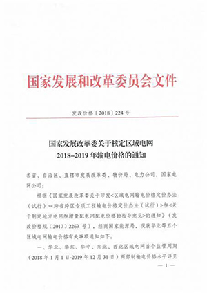 国家发改委发布核定区域电网2018—2019年输电价格的通知